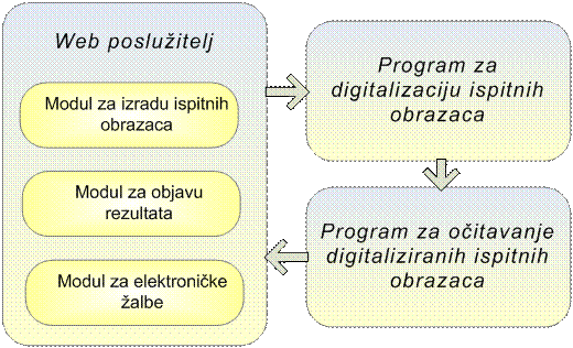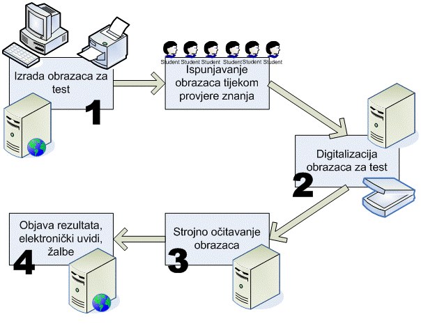 Na ovim web stranica dostupni su rezultati projekta Automatizacija izrade i obrade pisanih provjera znanja. U okviru projekta krenulo se je u izradu programskog rješenja koje će se moći koristiti na danas najzastupljenijim operacijskim sustavima: Microsoft Widowsima te Linuxu. Cilj je bio izraditi programe koji će pomoći u organizaciji, pripremi, obradi i objavi provjera znanja koje se provode uporabom obrazaca i pitanjima s ponuđenim odgovorima. Slika 1. ilustrira ovaj proces.